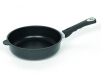 All handles of our product are build of extremely stable bakelite, oven proved until 260°C, 500 ° Farenheit. Cookware made by AMT Gastroguss is extra hard sealed in a patented high-tech process. We obtain excellent abrasive solidity and anti-stick quality by shooting an extremely hard material (Titanoxid) with a 20,000 degrees temperature plasma beam. Brass threads are molded into every product, to secure a higher firmness in the thread, and a higher stability of the handle. A speciality of AMT Gastroguss' products is the micro fine turned bottom, that ensures best heat transmission and distribution by maximum plain surfaces, especially on ceramic and halogen ovens.AMT Gastroguss is official outfitter and sponsor of the "German National Culinary Team". We invite you to benefit from the experience of German top chefs and their great cooperation with AMT Gastroguss. The experience of the professional chefs have greatly influenced the design of our new products.
